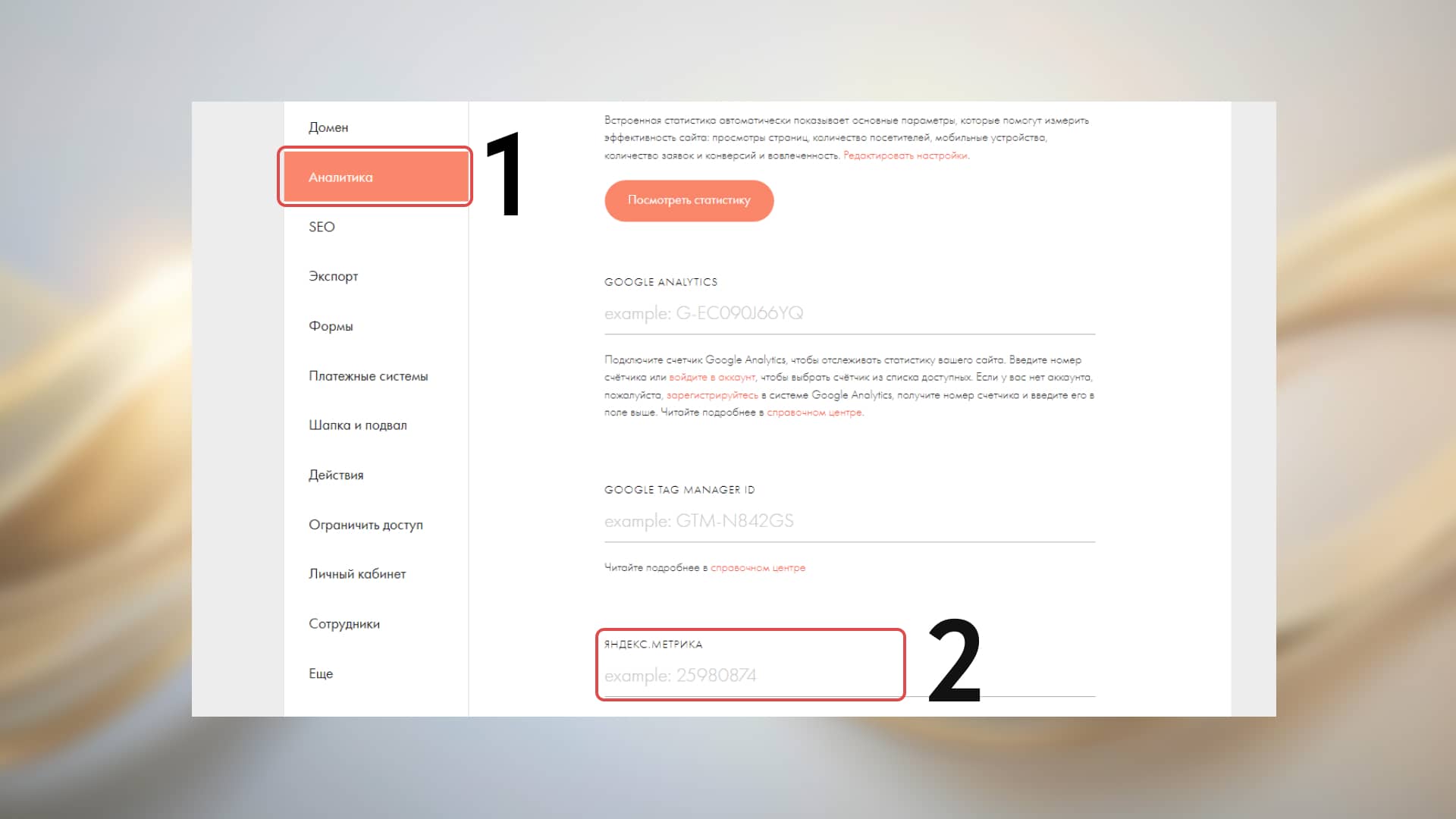 Настройки сайта → Аналитика, откройте раздел Метрики и выберите нужные опции.